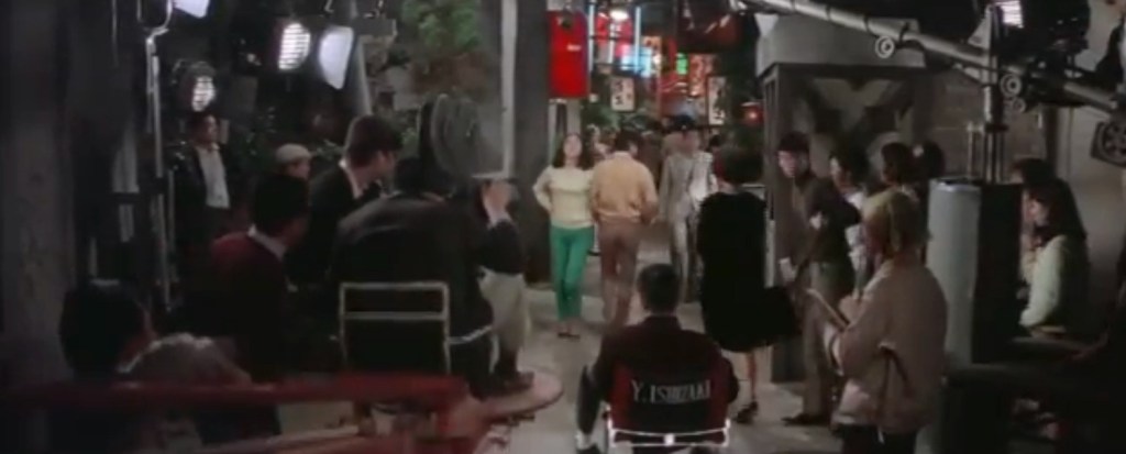 The opening is split into two frames. Hamada’s arrival at Nikkatsu studios and his preparation for his first scene reads as “real.” When he appears on the set, however, Ishihara Yujiro taking the role of director “Ishizaki” marks this as the fictional level of making You are My Lover. The final framing of the film, however, is even more complex and is not symmetrical with the first framing device.