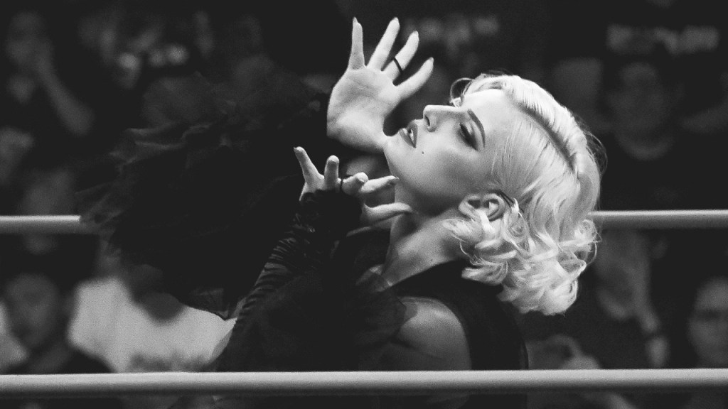 Timeless Toni Storm is an awe-inspiring drag talent and, like King Molasses, she has brought me much joy. WWE has long called its roster of female wrestlers, “Divas.” But Timeless Toni Storm is the true diva. She has combined wrestling with Classic Hollywood, and by God it works. When so many wrestling gimmicks for women have been unimaginative and bland, Toni Storm has embraced divas like Bette Davis, Gloria Swanson, and even Isabella Rossellini. She is a star, darling, and we all know it. She is often shot in glorious black and white, though more recently in grainy, lurid technicolor. Toni Storm is also loudly, proudly Queer and has embraced the drag and homoeroticism of wrestling in creating herself as a mad, glamorous star that desires some of her opponents as much as she wants to defeat them. We see it first in a polymorphously perverse storyline with Mariah May right out of All About Eve (USA, 1950) and Sunset Boulevard (USA, 1950). After the inevitable betrayal by May, Storm gave the performance of a lifetime, overcame her protegé and made a comeback as the AEW Women’s World Champion and gave an incredible acceptance speech. Since losing that championship to Kris Statlander—of whom Storm says, “My God, what a woman!“—Storm has donned gear reminiscent of both noir detectives and giallo murderers. She has joined forces with her beloved Mina Shirakawa as the Timeless Love Bombs tag team. And through it all, Storm raises up her competition and seems to have inspired or enabled the AEW women’s roster to feel more comfortable in being themselves rather than trying to fit into the tired tropes expected of women wrestlers.