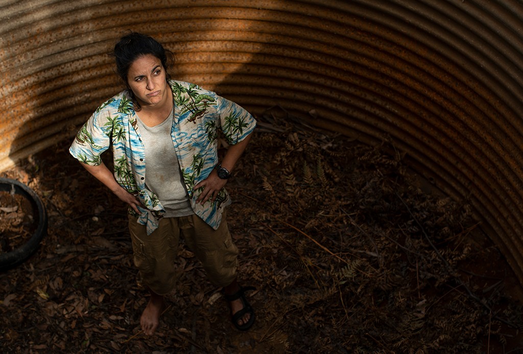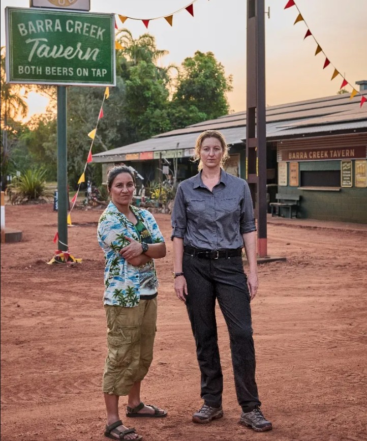 The number of queer and Indigenous folks in town also means that there is both a lot of anti-cop sentiment and a different take on the standard tension between newcomers and long-time residents on top of the underlying Land Back conflict between the Palawa community and white settlers. One of the first establishing shots in the show is of garbage cans with ACAB spray painted on them, which sets up an appropriately complex frame for the main character cops out of the gate. The show begins with two Indigenous teenage girls walking down a dark road to a deserted beach with exactly the kind of foreboding cinematography and musical score you’d expect at the beginning of a crime series. It plays with the expectation, so tragically grounded in the real-life experiences of missing and murdered Indigenous women, that one of them will be the victim, but instead Tammy Hampson (Leonie Whyman) trips over the dead naked guy, drops her cigarette, and sets his pubic hair on fire. It really sets the tone for the show.