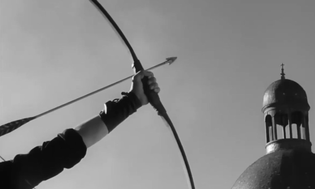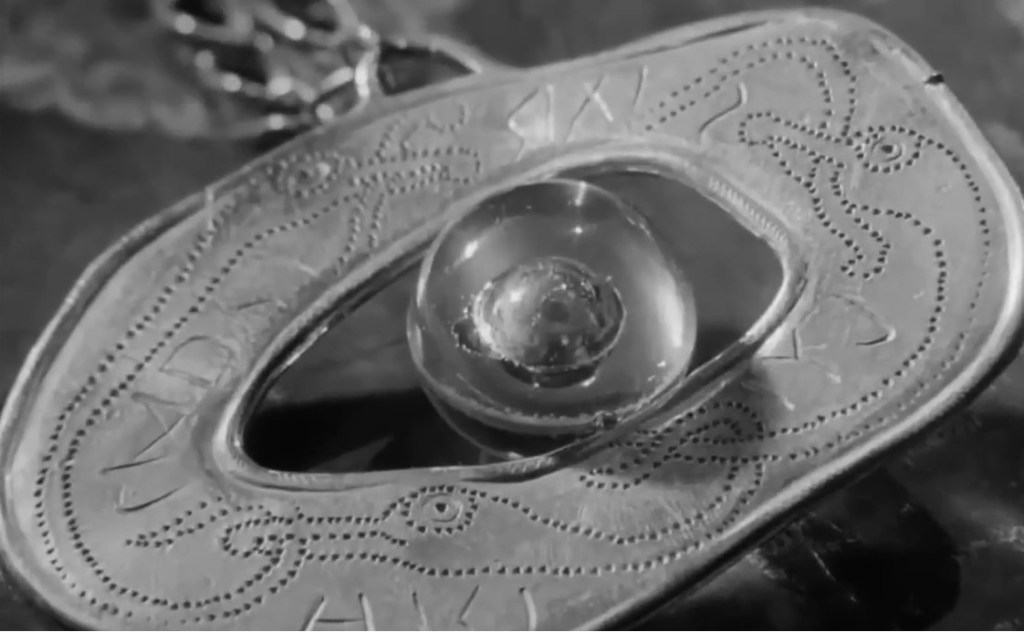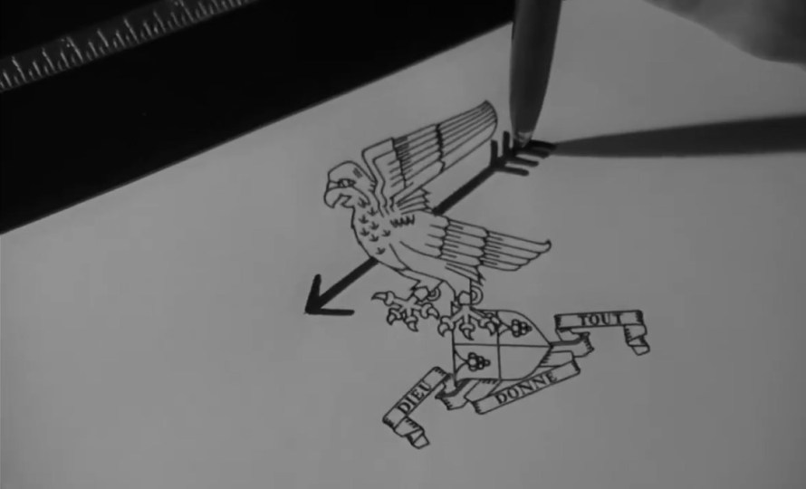 Eye of the Devil (UK/USA, 1966) opens with with a train hurtling down the track like an arrow to its mark. Intercut with the tracks are images of an arrow drawn and ready to fly from a bow, a dove, an amulet, hooded figures in the forest, a familial crest, scenes from a black tie party, and other curious images. On the train, a bearded man (Michael Miller) travels to Paris to see Philippe de Montfaucon, Marquis of Bellenac. He tells Philippe that it is time to come home to his rural ancestral estate. Bellenac’s vineyards are failing and the solution will not be a new strain or a scientific intervention. The farmers seek an older solution: a willing sacrifice.