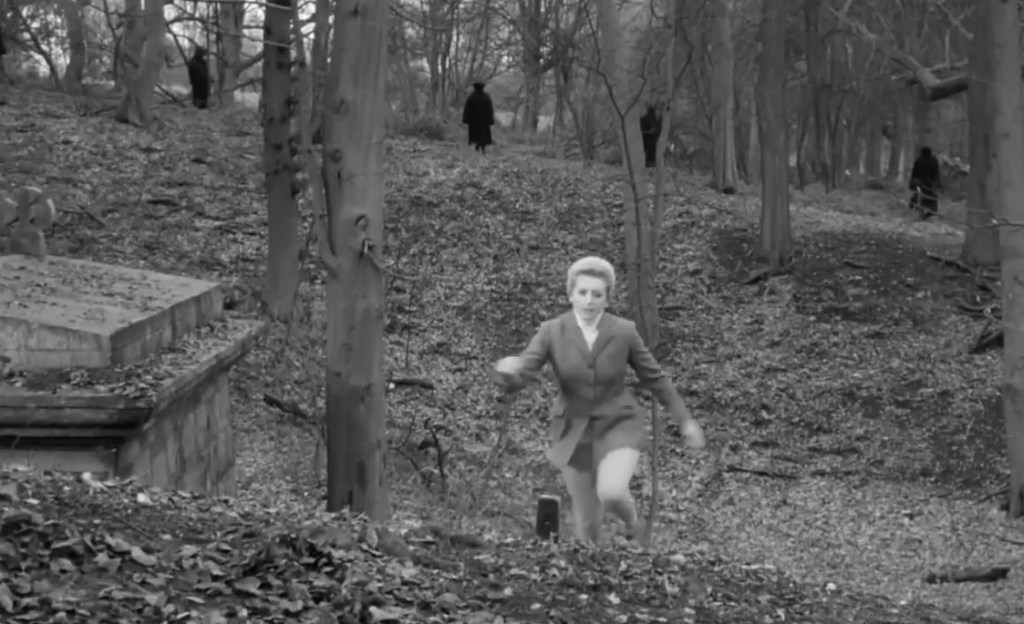 Catherine, Philippe, and their children Jacques (Robert Duncan) and Antoinette (Suky Appleby) live in the sophisticated world of Paris, 1966. Philippe prefers modern city life to the oppressive, almost medieval atmosphere of Bellenac. When summoned to deal with the crisis, Philippe tells Catherine to stay in Paris with the children because crop failures are “unpleasant” in Bellenac. The night after Philippe leaves, a somnambulant Jacques asks Catherine and family friend Jean-Claude (Edward Mulhare) for his “motor car” so he can go to Philippe. The next morning, Catherine drives to the Montfaucon chateau and becomes enmeshed in a Gothic folk horror mystery.