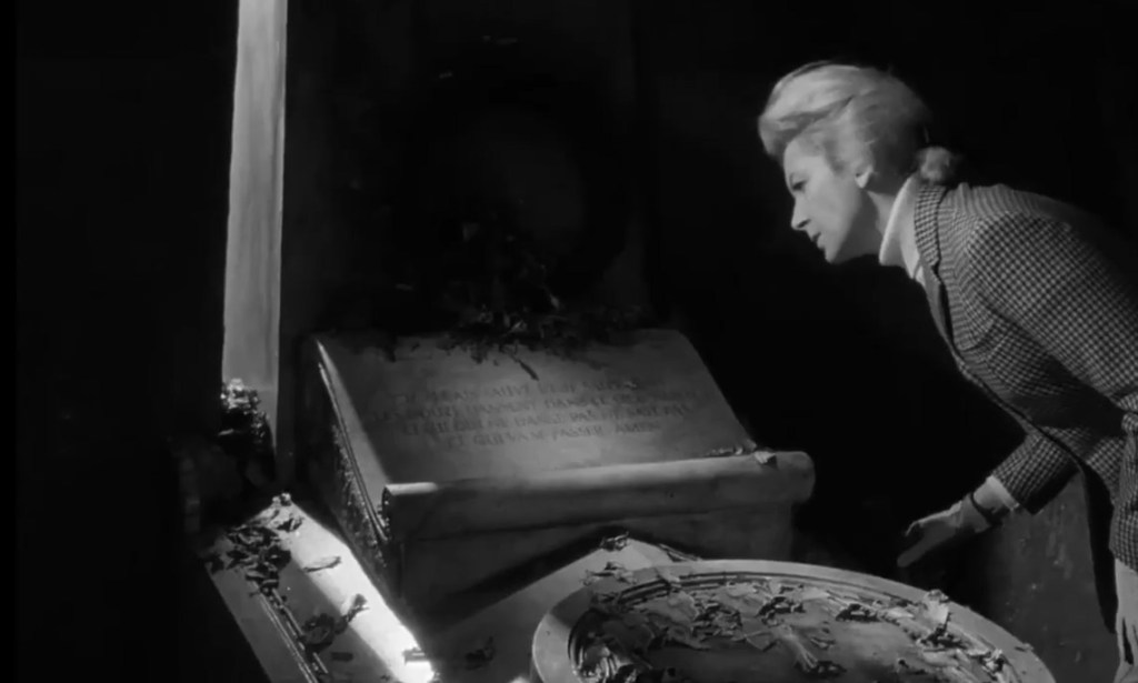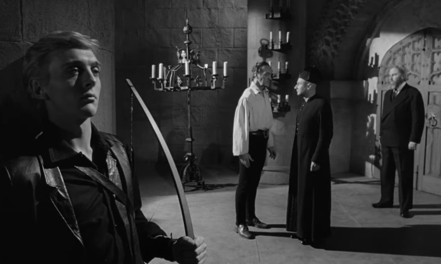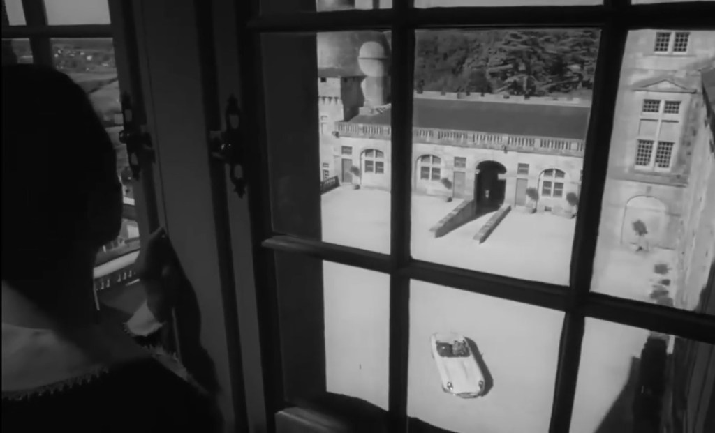 Eye of the Devil is beautiful. It is a late black and white film, but it uses the black and white so well—in lighting, composition, and Erwin Hillier’s cinematography. It’s supported in costuming, styling, and choices like Philippe’s white sports car and Christian’s parallel white stallion. Director J. Lee Thompson’s early social realist background is evident in the blocking and composition, especially in the scenes of the people of Bellenac in the vineyards or doffing their caps as Philippe drives by them in town.